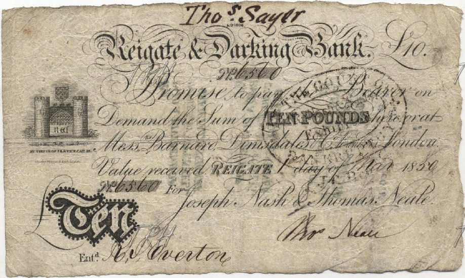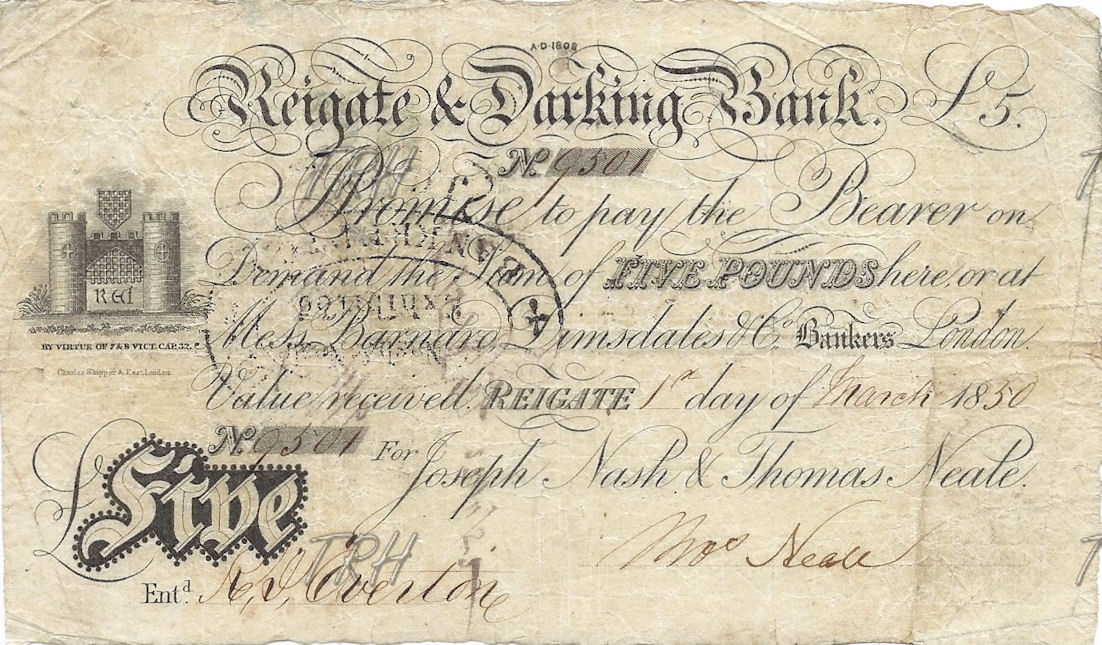 By 1827, Nash & Neale also had a branch in Croydon High Street and were trading as Reigate, Croydon and Darking Bank,
