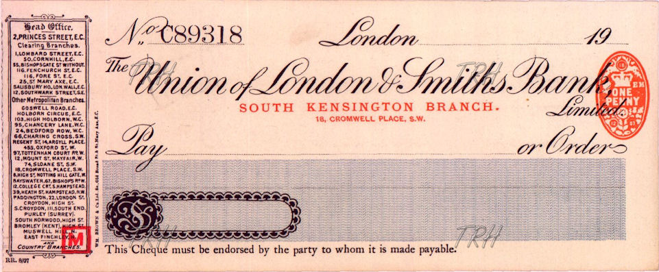 After joining with the old London bank of Smith, Payne and Smith, in 1902, it traded as the Union of London and Smiths Bank Ltd., until 1918 when it was taken over by the National Provincial Bank